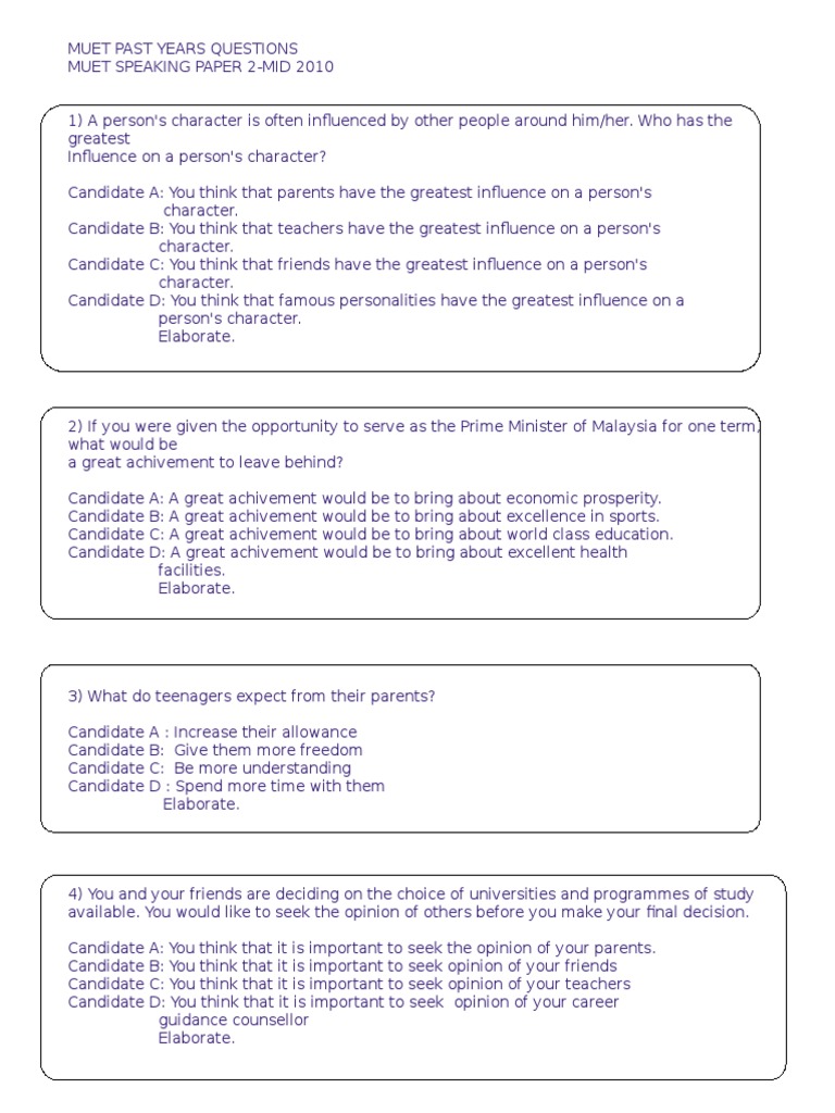 Muet Past Years Questions Speaking Pdf Psychological Concepts